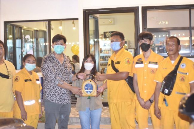 เจ้าของร้านกาแฟ-ร้านอาหารใจบุญ มอบเครื่องกระตุกหัวใจ AED ให้กับอาสากู้ภัยจุดยางเอน-เนินตอง ไว้ติดรถพยาบาลเพื่อนำไปใช้ช่วยเหลือผู้ป่วยฉุกเฉินในพื้นที่รับผิดชอบในโอกาสที่เปิดร้านกาแฟและร้านอาหารอย่างเป็นทางการ