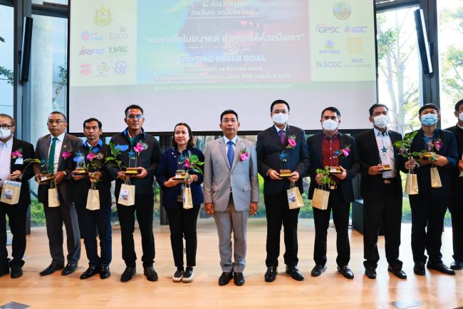 โดยมีหน่วยภาครัฐ จำนวน 5 แห่ง ภาคอุตสาหกรรม จำนวน 7 แห่ง และประชาชน จำนวน 4 ราย ได้รับรางวัลเชิดชูเกียรติฯ ซึ่งมีหัวหน้าส่วนราชการจังหวัดระยอง อปท.ผู้ประกอบการภาคเอกชน และประชาชน จำนวน 150 คน เข้าร่วมกิจกรรม และเป็นสักขีพยานในพิธีมอบรางวัลดังกล่าว ในโอกาสนี้ ผวจ.ระยอง ยังได้ปาฐกถาพิเศษเรื่อง “RAYONG GREEN GOAL ระยอง เมืองแห่งโอกาสที่เท่าเทียม เติบโตอย่างสมดุลบนพื้นฐานของนวัตกรรมและเทคโนโลยีภายใต้วิถีความเป็นกับสิ่งแวดล้อม”ด้วย นอกจากนี้ยังผู้เข้าร่วมงานยังได้ร่วมกันแสดงพลังเชิงสัญลักษณ์ RAYONG GREEN GOAL และมีนิทรรศการแสดงผลงานด้านสิ่งแวดล้อมขององค์กรหน่วยงานต่างๆ ในจังหวัดระยอง ภายใต้แนวคิด “Innovation Exhibition”รวมทั้งการจัดแสดงดอกไม้เมืองหนาว ภายใต้แนวคิด Zero Waste สู่ Creative Economy ให้ผู้เข้าร่วมงานได้เที่ยวชมอีกด้วย