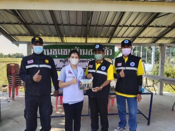 และในครั้งนี้เจ้าหน้าที่พยาบาลประจำโรงพยาบาลส่งเสริมสุขภาพตำบลเก่างิ้ว อ.พล จ.ขอนแก่น ได้นำเครื่องดื่มกาแฟมามอบให้ ผู้ใหญ่บ้านหมู่8 ผู้ช่วยใหญ่บ้าน เจ้าหน้าที่ฝ่ายปกครองและอสม.ประจำหมู่บ้านสระแก้ว ที่มาประจำจุดตรวจด่านชุมชนบ้านสระแก้ว