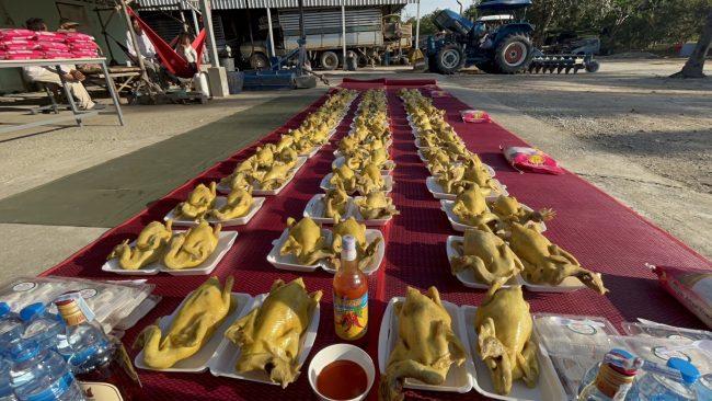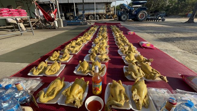 เกษตกรทำไร่สับปะรด ต้มไก่ 100 ตัวแก้บนเจ้าที่หลังจากประสบความสำเร็จอย่างที่หวัง นำไก่ที่ไหว้แก้บนแจกเพื่อนบ้าน