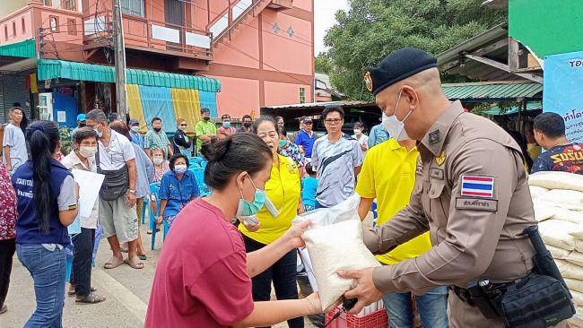 ชาวชุมชนผาแดงแจกข้าวสารอาหารแห้งจำนวน400ชุด