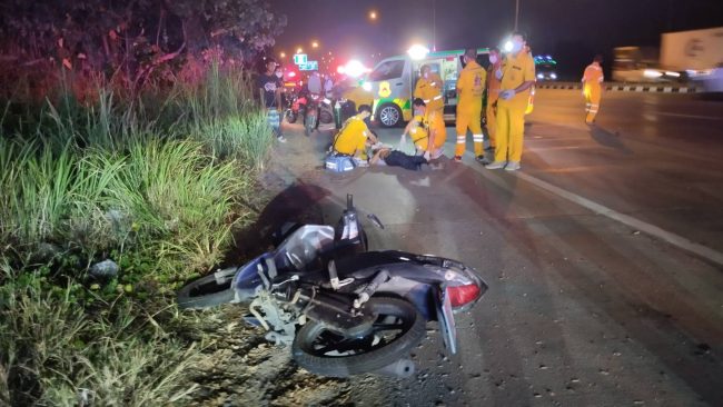 หนุ่มโรงงานเมาแล้วซิ่งจยย.ตกร่องข้างถนนรถจยย.พลิกคว่ำหมดสติบาดเจ็บสาหัส