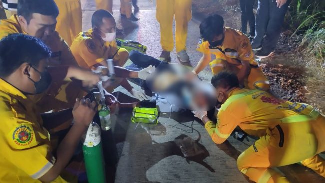 เมื่อเวลา21.20น.(12ม.ค.2565) พ.ต.ท.นพดล วันดี สว.เวรสภ.หนองขาม ได้รับแจ้งว่ามีคนขี่รถจยย.ล้มริมถนนสายมาบเอียง-แหลมฉบัง หมู่ 1 ตำบลหนองขาม อำเภอศรีราชา ก่อนถึงปากทางเข้านิคมอุตสาหกรรมปิ่นทอง1ระยะทาง 800 เมตร หมดสติปลุกไม่ตื่น หลังรับแจ้งจึงประสานอาสากู้ภัยเพียวเยี้ยงไท้ศรีราชาเดินทางไปตรวจสอบร่วมกัน โดยพบว่าผู้บาดเจ็บหมดสติปลุกไม่ตื่นจึงทำการกระตุ้นหัวใจจนตื่นและให้ออกซิเจนช่วยหายใจ และเมื่อรู้สึกตัวเริ่มมีอาการต่อสู้ดิ้นรนเนื่องจากมีอาการเมาสุรา มีกลิ่นสุราคละคลุ้ง พูดจาไม่รู้เรื่อง ดิ้นรน จนอาสากู้ภัยที่กำลังช่วยกันปฐมพยาบาลต้องช่วยกันจับตัวไว้