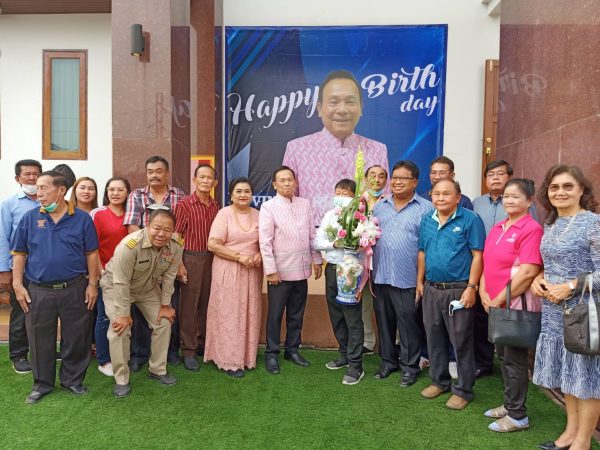 ชลบุรี # สนธยา คุณปลื้ม วิทยา คุณปลื้ม นายก อบจ.ชลบุรีพร้อมครอบครัว คุณปลื้ม ร่วมงานวันเกิด นายวินัย คุ้มครอง นายก อบต.บ้านเก่า มี นักการเมือง ข้าราชการ กำนัน ผู้ใหญ่บ้าน พ่อค้า นักธุรกิจและประชาชนร่วมงานจำนวนมาก
