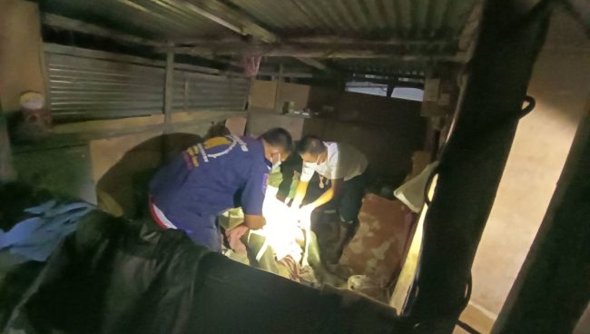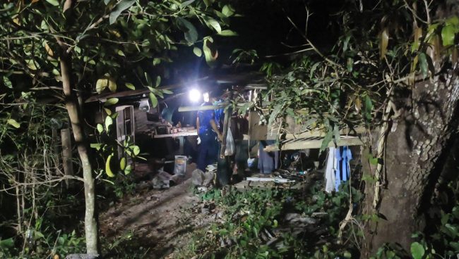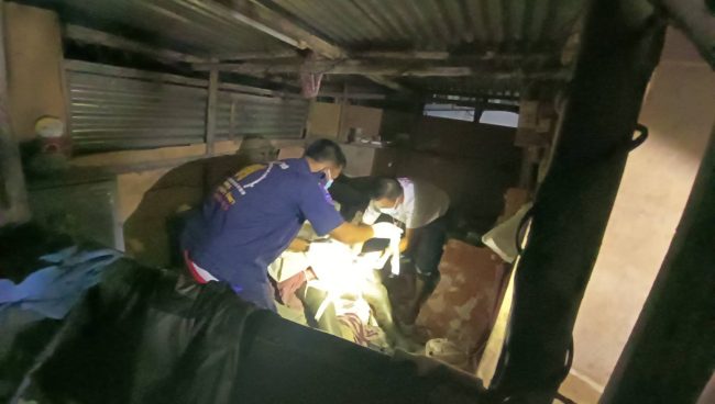 ที่เกิดเหตุเป็นเพิงพักลักษณะกระต๊อบ ปลูกด้วยไม้มุงด้วยสังกะสี บนที่นอน พบร่างผู้เสียชีวิต ทราบชื่อคือนายดม ขันตี อายุ 57 ปี นอนเสียชีวิต นอนห่มผ้าในสภาพขึ้นอืด ส่งกลิ่นเหม็นคละคลุ้งไปทั่วบริเวณ
