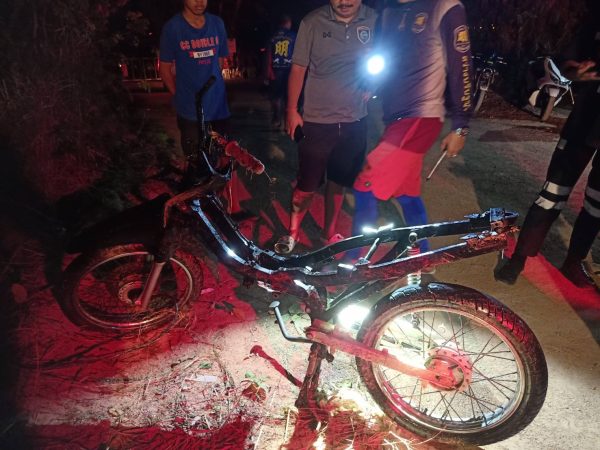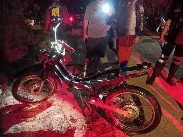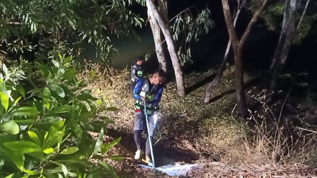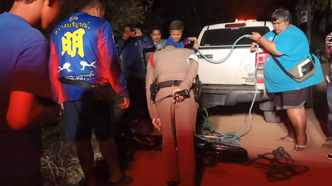 ที่เกิดเหตุบริเวณริมขอบอ่าง ซึ่งเป็นคล้ายเหวลึกลงไปในอ่างเก็บน้ำประมาณ 3-4 เมตร พบรถจักรยานยนต์ จมอยู่ใต้น้ำ มีเข้เกาะอยู่ โดยเจ้าหน้าที่กู้ภัยฯต้องใช้ชุดประดาน้ำดำลงไปตรวจสอบ ใช้เวลาเพียงไม่นาน ก็ทราบว่าเป็นเพียงซากโครงรถจักรยานยนต์ถูกทิ้งไว้เท่านั้น ตรวจสอบไม่พบผู้บาดเจ็บหรือผู้เสียชีวิตแต่อย่างใด เจ้าหน้าที่จึงได้ใช้เชือก ดึงซากรถคันดังกล่าวขึ้นมา ซึ่งเหลือเพียง โครงเลขที่ MLHJA 144 9 P 5208490 และล้อ เท่านั้น ส่วนเครื่องยนต์ได้สูญหายไป เจ้าหน้าที่ตำรวจจึงเก็บไว้เป็นหลักฐาน