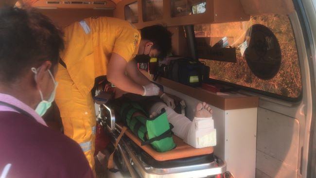 เจ้าหน้าที่ควบคุมไฟป่าเขาเขียวโชคร้าย ขึ้นเขาหาจุดเกิดไฟป่า สะดุด จั่นห้าว ลั่นโป้ง เจ็บสาหัส (มีคลิป)