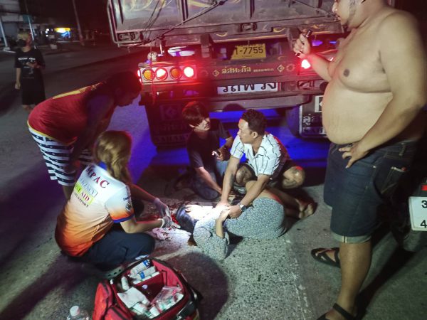 หนุ่มโรงงานออกกะกำลังกลับบ้านเสยท้ายรถบรรทุกที่ออกจากปั๊มน้ำมัน ร่างกระเด็นดับสลด