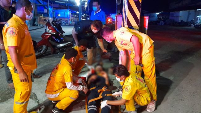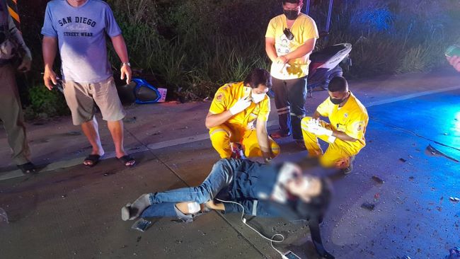 หนุ่มวัยรุ่นซิ่งจยย.เหินเนินกระโดดกลางถนนล้มคว่ำบาดเจ็บอาสากู้ภัยโร่ช่วยทำบาดแผล