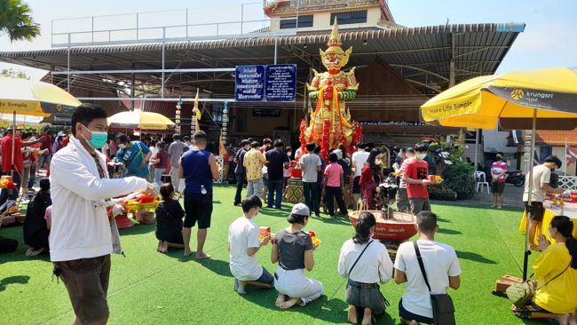แห่ขอเลขเด็ด ‘ท้าวเวสสุวรรณโณ’(ท้าวเวสเศรษฐี) กันแน่นวัดจุกกระเฌอ ศรีราชา ทิ้งโค้งก่อนวันห…