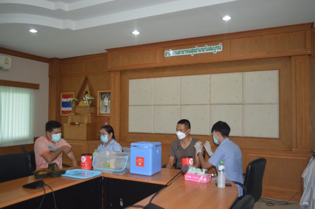 ตำรวจ/ฝ่ายปกครองวังสมบูรณ์เพื่อรณรงค์วัคซีนป้องกันไข้หวัดใหญ่ 2 สายพันธุ์และความปลอดภัยตามมาตรฐานขององค์การอนามัยโลก