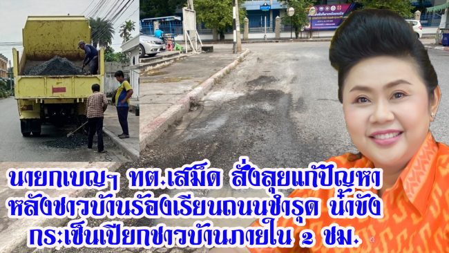 #ชลบุรี นายกฯเบ็ญสั่งลุยทันที หลังรับเรื่องร้องเรียนถนนชำรุดน้ำขัง กระเซ็นเปียกเลอะเทอะ ชาวบ้านดีใจแก้ไขปัญหาทันอกทันใจ ขอหนุนลงนายกเทศมนตรีตำบลเสม็ดอีกสมัย