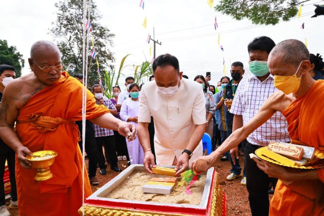 ระยอง- ประชาชนร่วมงานวางศิลาฤกษ์องค์ท้าวเวสสุวรรณ วัดเนินสุข อ.เขาชะเมา จ.ระยอง เนื่องแน่น ทั้งนี้ทางวัดจัดสร้างขึ้นเพื่อเป็นเครื่องยึดเหนี่ยวจิตใจของประชาชนในพื้นที่ และใกล้เคียง
