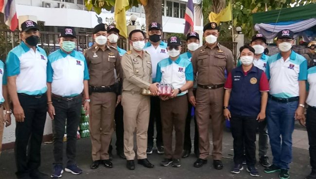 นายอำเภอศรีราชาป้ายแดงเปิดจุดบริการประชาชนพร้อมปล่อยแถวเจ้าหน้าที่ตำรวจในช่วงเทศกาลวันปีให…
