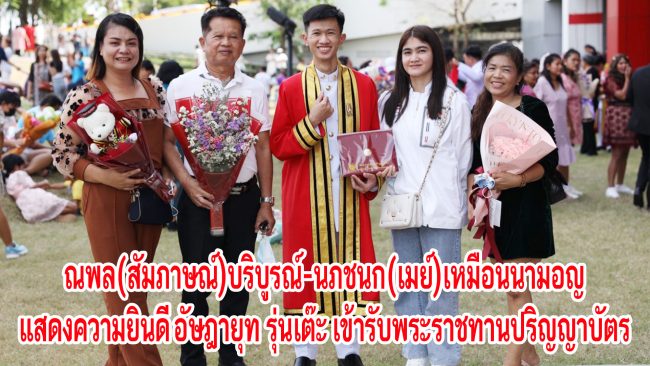 #กรุงเทพฯ ณพล (สัมภาษณ์) บริบูรณ์-นภชนก (เมย์) เหมือนนามอญ ที่ปรึกษาประจำคณะกรรมาธิการการคุ้มครองผู้บริโภคสภาผู้แทนราษฎร แสดงความยินดีกับ อัษฎายุท รุ่นเต๊ะ หลานชายรับพระราชทานปริญญาบัตร ม.เทคโนโลยีพระจอมเกล้าพระนครเหนือ