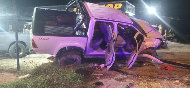 กระบะซิ่งเฉี่ยวชนจักรยานยนต์ดับคาที่ 1ราย ก่อนพุ่งชนเข้าอู่รถเสียหายอีก1คัน