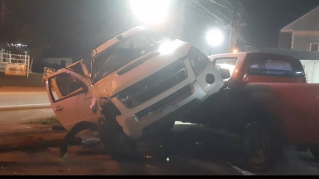 ชลบุรี-กระบะซิ่งเฉี่ยวชนจักรยานยนต์ดับคาที่ 1ราย ก่อนพุ่งชนเข้าอู่รถเสียหายอีก1คัน https:/…