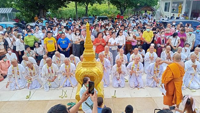 วัดเนินตองจัดพิธีอุปสมบทหมู่ เพื่อได้เรียนรู้และปฏิบัติหลักธรรมในระยะสั้นและสืบสานประเพณีท…