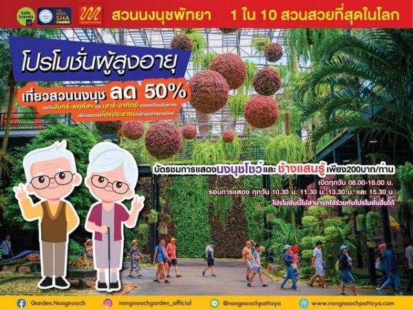 สวนนงนุชพัทยา ขยายโปรโมชั่นของเดือนกรกฎาคมซื้อบัตรผ่านประตูสำหรับผู้สูงอายุลด50% ออกไปถึง …