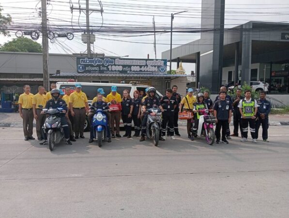 สภ.บ่อวิน ร่วมกับ อบต.บ่อวินเปิดจุดตรวจจุดบริการประชาชนป้องกัน-ลดอุบัติเหตุทางถนน 7 วันอันตรายช่วงเทศกาลสงกรานต์