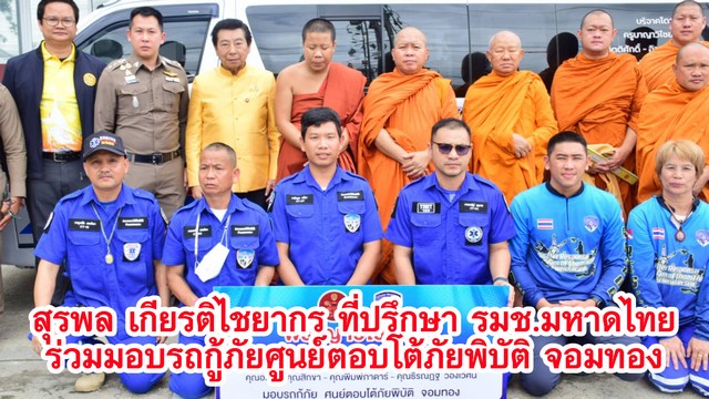 Read Moreสุรพล เกียรติไชยากร ที่ปรึกษา รมช.มหาดไทย ร่วมทำบุญสืบชะตา สภ.จอมทอง นิมนต์ครูบาญาวิไชย เจริญพระพุทธมนต์ พร้อมทั้งร่วมมอบรถกู้ภัยศูนย์ตอบโต้ภัยพิบัติ จอมทอง
