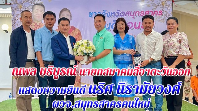 ณพล บริบูรณ์ นายกสมาคมสื่อมวลชนและนักประชาสัมพันธ์ภาคตะวันออก พร้อมผู้สื่อข่าวภาคตะวันออกร่วมแสดงความยินดี นริศ นิรามัยวงศ์ เดินทางมารับตำแหน่งใหม่ผู้ว่าราชการจังหวัดสมุทรสาคร 21/11/202421/11/2024 @chonnewstv ณพล บริบูรณ์ นายกสมาคมสื่อมวลชนและนักประชาสัมพันธ์ภาคตะวันออก พร้อมผู้สื่อข่าวภาคตะวันออกร… Read More