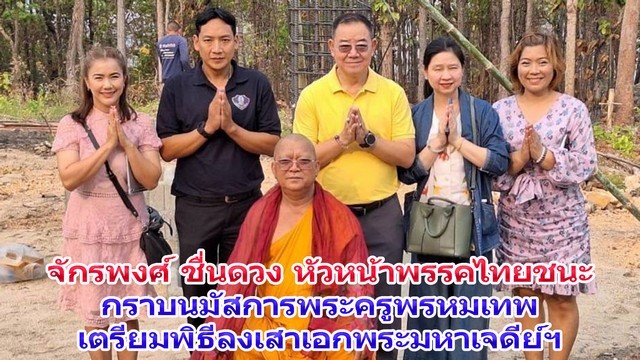 จักรพงศ์ ชื่นดวง หัวหน้าพรรคไทยชนะ พร้อมคณะกราบนมัสการพระครูพรหมเทพฯ พร้อมเตรียมพิธีลงเสาเ…