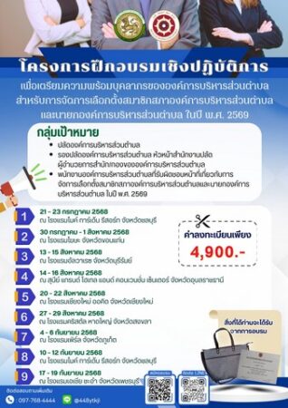 โครงการฝึกอบรมเชิงปฏิบัติการ เพื่อเตรียมความพร้อมบุคลากรขององค์การบริหารส่วนตำบลสำหรับการจัดการเลือกตั้งสมาชิกสภาองค์การบริหารส่วนตำบล และนายกองค์การบริหารส่วนตำบลในปีพ.ศ. 2569