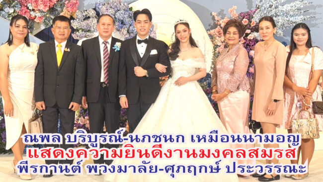ณพล บริบูรณ์-นภชนก เหมือนนามอญ แสดงความยินดีงานมงคลสมรส พีรกานต์ พวงมาลัย-ศุภฤกษ์ ประวรรณะ ญาติสนิทมิตรสหายร่วมงานกันอย่างมากมาย